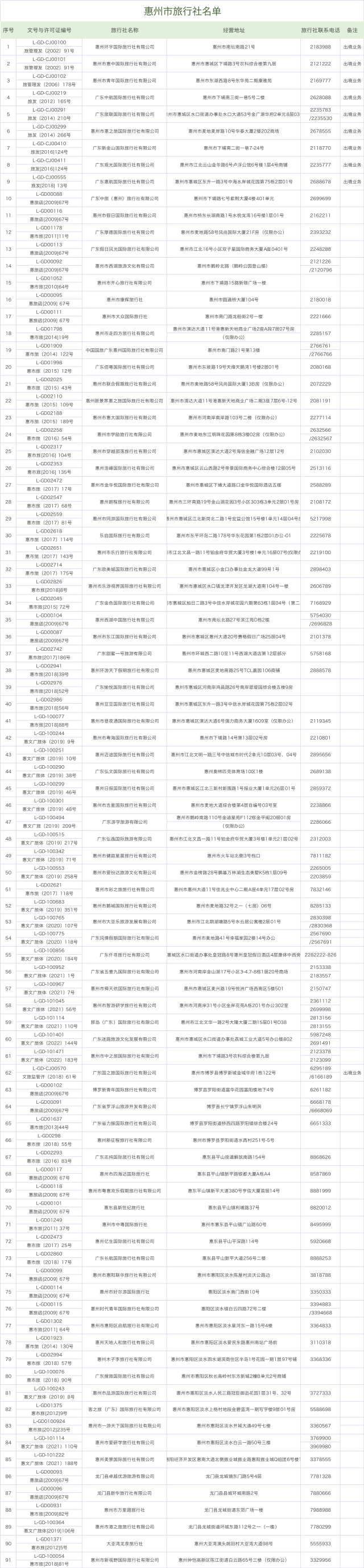 記者了解到,目前,在惠州市文化廣電旅游體育局市場(chǎng)管理科登記備案的旅行社共有91家,具備經(jīng)營(yíng)出境業(yè)務(wù)資質(zhì)的僅10家。廣大市民朋友出境旅游要選擇有合法資質(zhì)的旅行社,并簽訂正規(guī)旅游合同,索要發(fā)票,在旅游中遇到糾紛要及時(shí)咨詢或向文旅部門(mén)投訴。