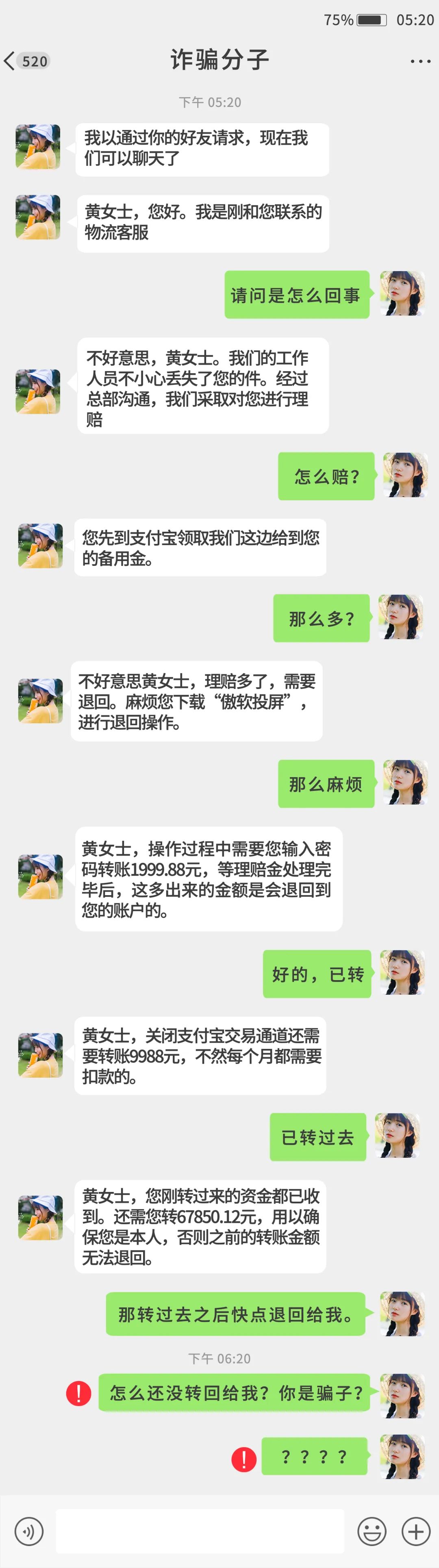 1.騙子通過非法渠道獲取網(wǎng)購(gòu)買家信息及快遞信息后冒充快遞公司客服以網(wǎng)購(gòu)買家快遞丟失為由進(jìn)行經(jīng)濟(jì)賠嘗。