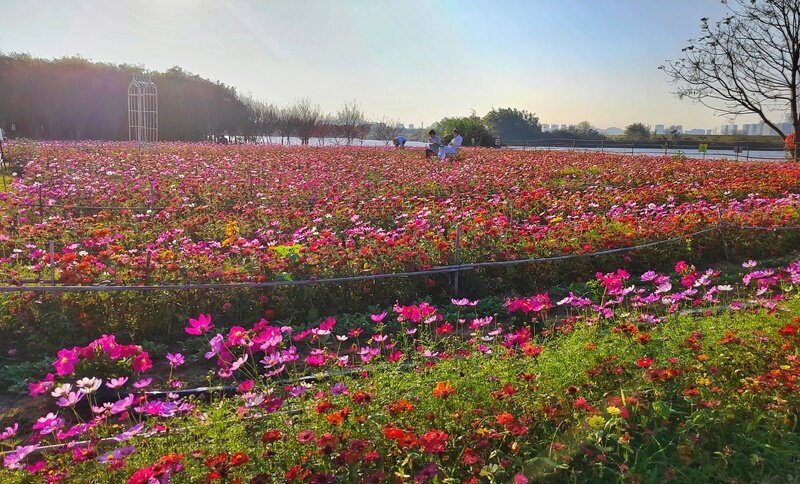 位于惠陽區(qū)良井鎮(zhèn)的廣東省六谷裕興現(xiàn)代農(nóng)業(yè)園、惠州市惠城區(qū)三棟鎮(zhèn)紫溪半島等地,盛開的牽牛花、格桑花、玫瑰花,醉蝶花等名花異草,延綿成海,美不勝收。