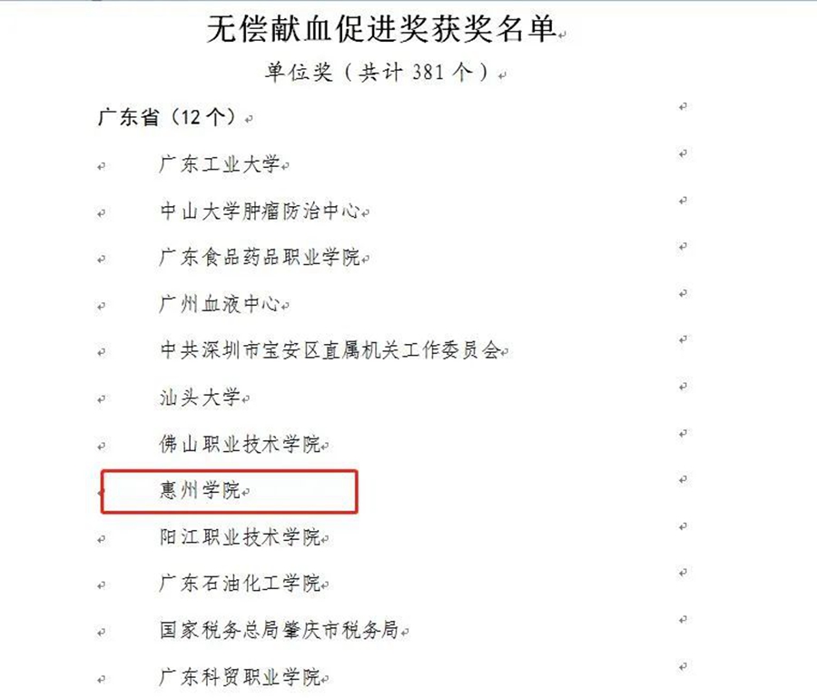 惠州市獲評無償獻(xiàn)血先進(jìn)市