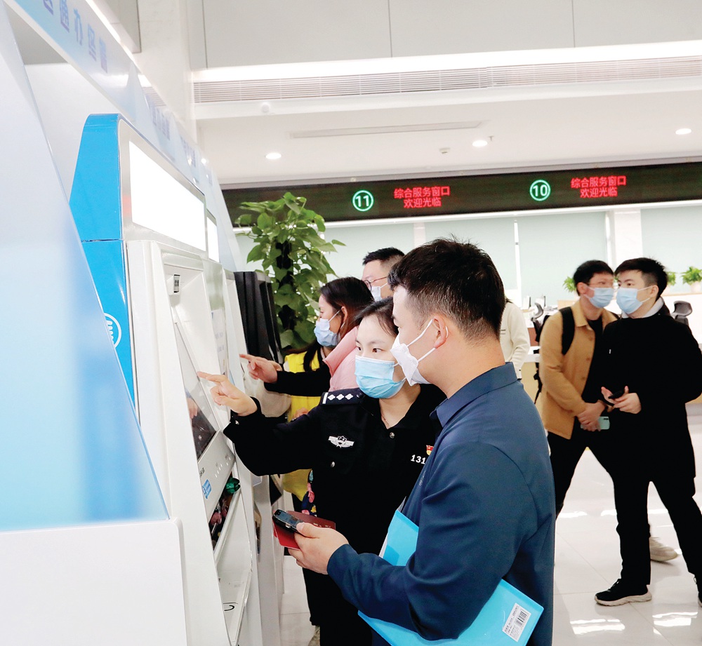 公安民警指引市民辦理“惠戶政”業(yè)務。