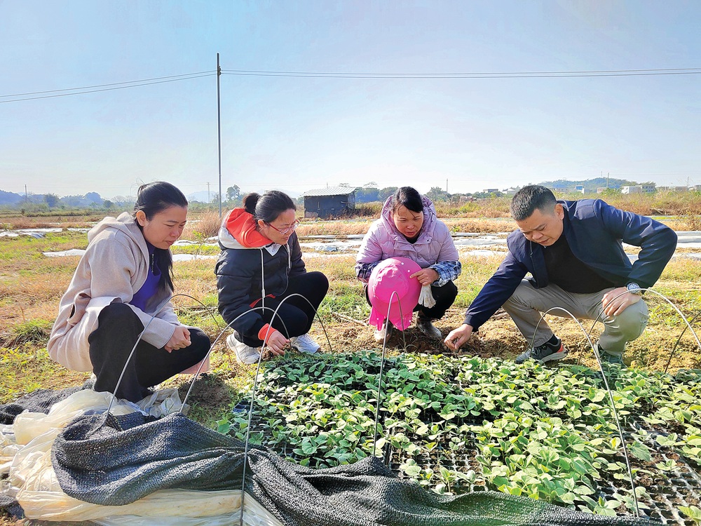 “輕騎兵”鄉(xiāng)村行團隊服務(wù)到田間。惠州日報記者劉建威 通訊員湯倩 曾宏鋒 攝