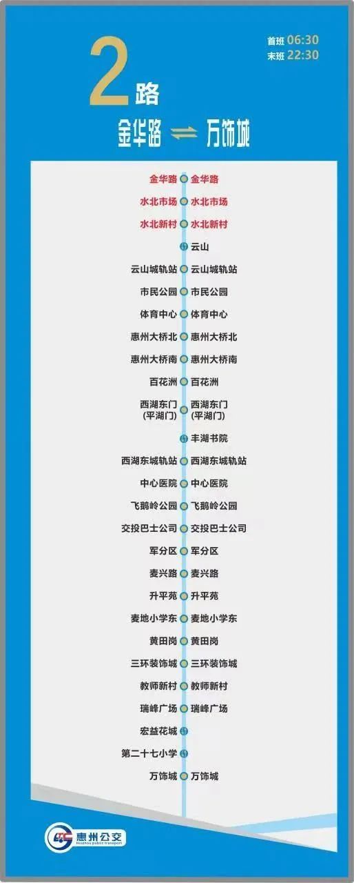 調(diào)整后途經(jīng)路段:調(diào)整2路取消云山東路、菊花一路部分路段,調(diào)整線路改由云山城軌站經(jīng)惠州大道、期湖塘路、菊花一路、金華路行駛。