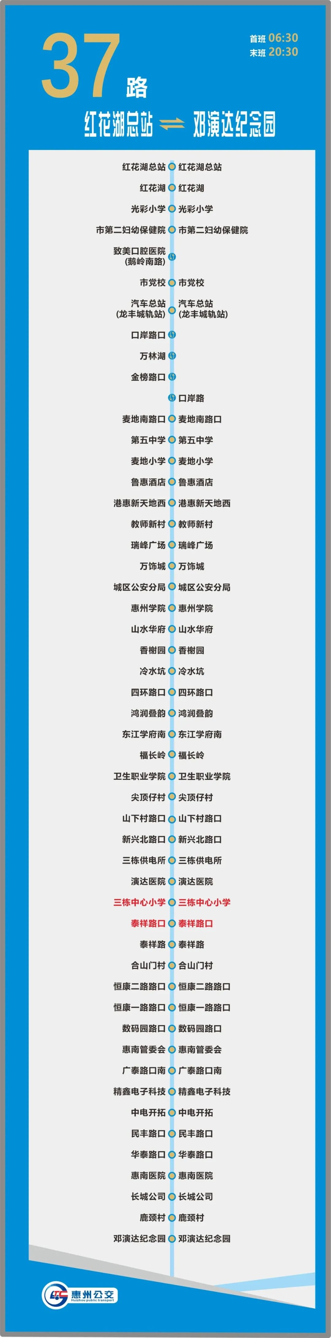 恢復(fù)停靠站點(diǎn):三棟中心小學(xué)、泰祥路口