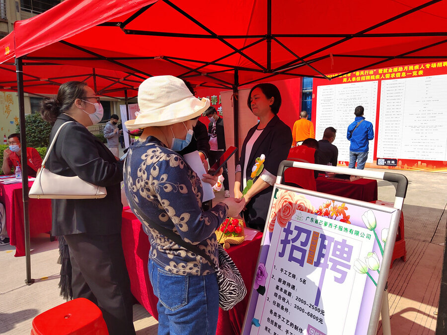 助殘春風(fēng)送真情,就業(yè)援助暖民心。2月24日上午,由惠州市殘疾人聯(lián)合會、惠州市人力資源和社會保障局主辦的2023年惠州市“春風(fēng)行動”暨就業(yè)援助月殘疾人專場招聘會在惠州市殘聯(lián)綜合服務(wù)中心舉行,吸引41家單位參與招聘,提供包括客服專員,倉管員、QC、工程師等23個招聘工種,需求招聘人數(shù)近350人,現(xiàn)場93人達成初步就業(yè)意向。