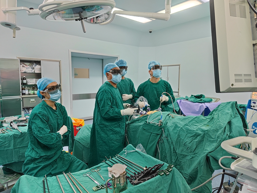 近年來(lái),胃腸肛腸外科在診療水平上全方面與省級(jí)水平接軌。目前常規(guī)開展腹腔鏡胃癌、結(jié)直腸癌根治手術(shù),有指征的部分病例開展腹腔鏡腹壁無(wú)疤痕經(jīng)自然腔鏡出標(biāo)本手術(shù)(Noses手術(shù))和腹腔鏡超低位直腸癌保肛根治手術(shù)TaTME術(shù)式,同時(shí)結(jié)合ERAS(快速康復(fù)理念)治療,讓消化道腫瘤患者手術(shù)創(chuàng)傷更小、恢復(fù)速度更快;成立胃癌、結(jié)直腸癌MDT團(tuán)隊(duì),為消化腫瘤患者診療設(shè)計(jì)最合理治療方案。疝與腹壁外科全面開展相關(guān)手術(shù),如腹腔鏡TEP術(shù)、TAPP術(shù)、單孔TEP術(shù)、腹腔鏡食管裂孔疝修補(bǔ)+胃底折疊術(shù)、IPOM術(shù)等。