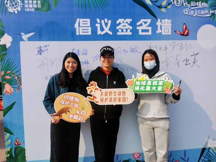 記者看到,當(dāng)天前往惠州植物園的市民紛紛表現(xiàn)出濃厚的興趣,主動駐足觀看了解“世界野生動植物日”的由來及野生動植物保護(hù)知識的講解,并主動在保護(hù)野生動植物倡議墻上簽字,承諾“關(guān)愛野生動物,保護(hù)美好家園”“保護(hù)野生動植物,從我做起”。