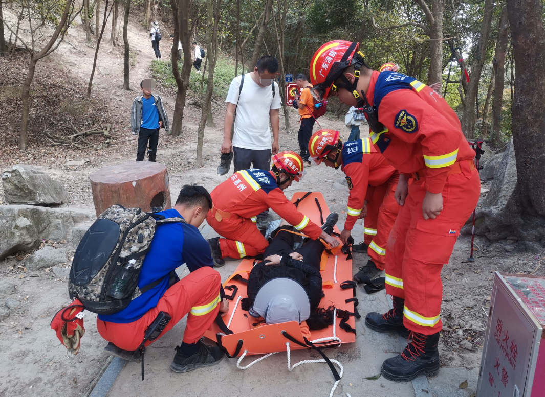 消防員到達(dá)白云障山腳時(shí),經(jīng)聯(lián)系報(bào)警人和詢問景區(qū)負(fù)責(zé)人得知,受傷人員為一名30歲左右的女子,在山頂站在石頭邊拍照時(shí)不小心摔倒掉落,左腳摔傷脫臼,情況比較危急,無法正行走。