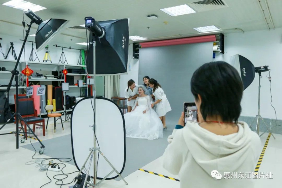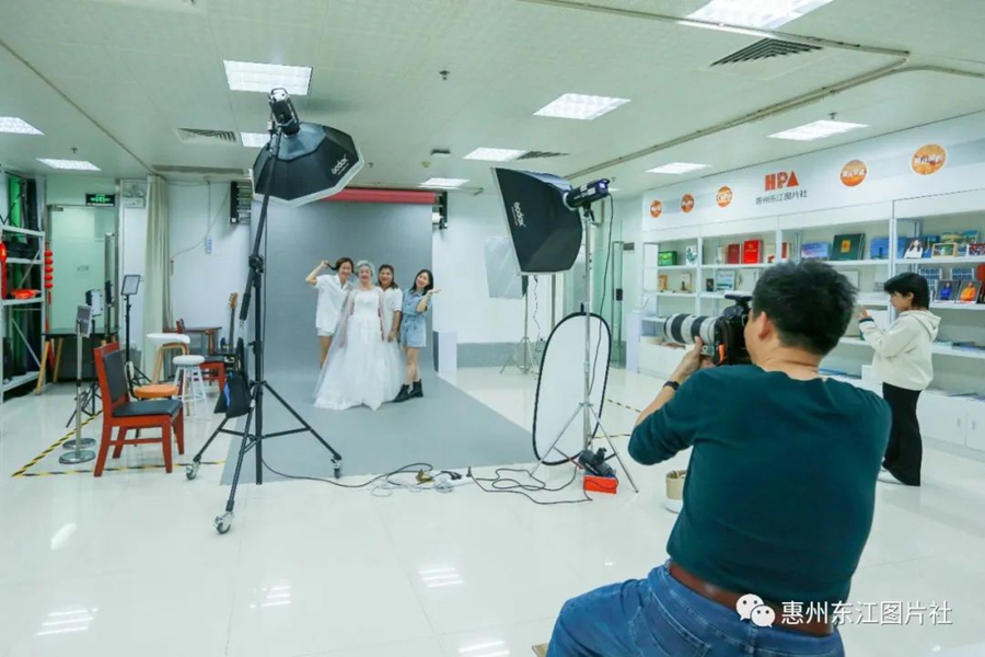 惠州東江圖片社攝影師在影棚為市民拍攝。