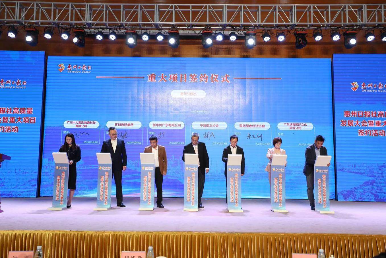 在簽約活動中,惠州日報社與中國報業(yè)協(xié)會、新華網(wǎng)廣東有限公司等12家單位企業(yè)簽訂合作協(xié)議,合作項目內(nèi)容涵蓋媒體融合、文旅產(chǎn)業(yè)、數(shù)字科技、鄉(xiāng)村振興、智庫服務等行業(yè)領域,將進一步推動惠州日報社書寫媒體深度融合新篇章,創(chuàng)造事業(yè)產(chǎn)業(yè)新輝煌。