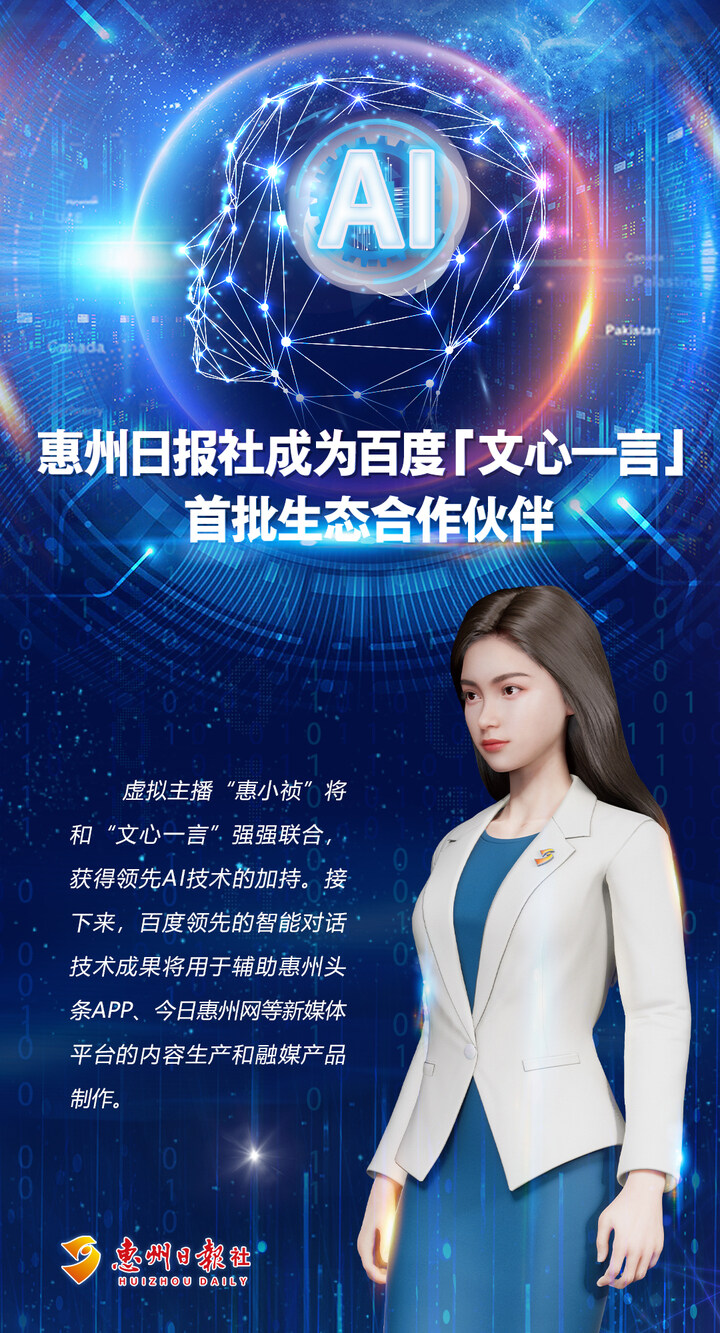 值得一提的是,惠州日報(bào)社虛擬主播“惠小禎”將和“文心一言”強(qiáng)強(qiáng)聯(lián)合,獲得領(lǐng)先AI技術(shù)的加持,把百度領(lǐng)先的智能對話技術(shù)成果廣泛應(yīng)用在融媒產(chǎn)品制作、新聞播報(bào)等領(lǐng)域。未來,惠州日報(bào)社將集成“文心一言”的技術(shù)能力,與百度在大數(shù)據(jù)、人工智能等多個(gè)領(lǐng)域深化合作,通過技術(shù)共享、培訓(xùn)賦能等方式,推進(jìn)惠州日報(bào)社融媒轉(zhuǎn)型升級,提升惠州日報(bào)社在融媒體時(shí)代的競爭力,為惠州日報(bào)社各項(xiàng)產(chǎn)業(yè)事業(yè)發(fā)展探索無限可能。