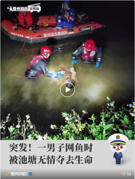 到達(dá)現(xiàn)場后,消防員與民警了解情況得知該男子橫渡池塘撒網(wǎng)捕魚時,突發(fā)狀況掙扎求救。岸邊目擊者由于不會游泳,立即到人員密集處大聲呼救并撥打110電話報(bào)警求助,但回來時已不見男子身影。