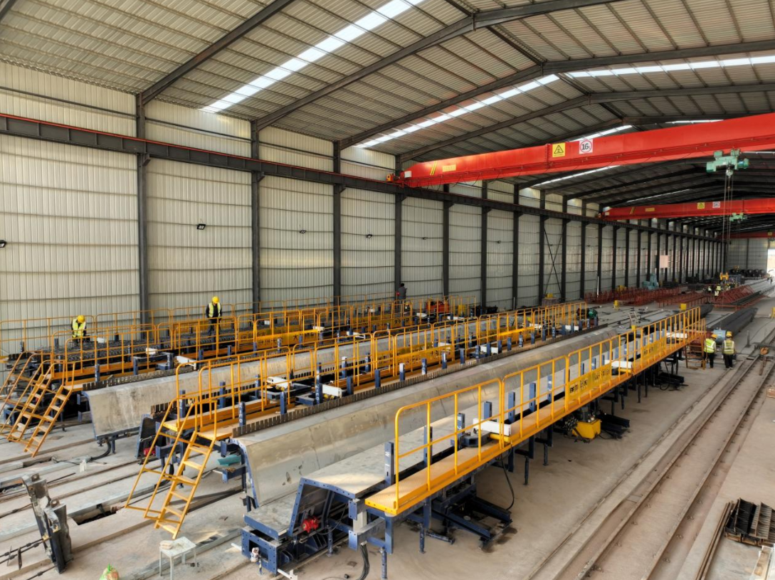 據(jù)悉,惠河高速改擴(kuò)建項(xiàng)目全線共有大小橋166座,共需架設(shè)梁板6839片,預(yù)制梁數(shù)量大,涉及雙T梁、小箱梁等多種梁板型號(hào)。“我們建設(shè)了2個(gè)智慧梁場(chǎng),設(shè)置14條環(huán)形生產(chǎn)線,梁板的生產(chǎn)質(zhì)量和效率大幅提升,有力保證了項(xiàng)目橋梁工程的品質(zhì)。”鐘純耀介紹,在智慧環(huán)形生產(chǎn)線上,梁板的鋼筋籠制作、混凝土澆筑、蒸汽養(yǎng)生等所有工序都由機(jī)械自動(dòng)完成,施工精確度和生產(chǎn)質(zhì)量得到充分保證,相比人工制梁效率提升近3倍,每片梁生產(chǎn)時(shí)間節(jié)省約5天。