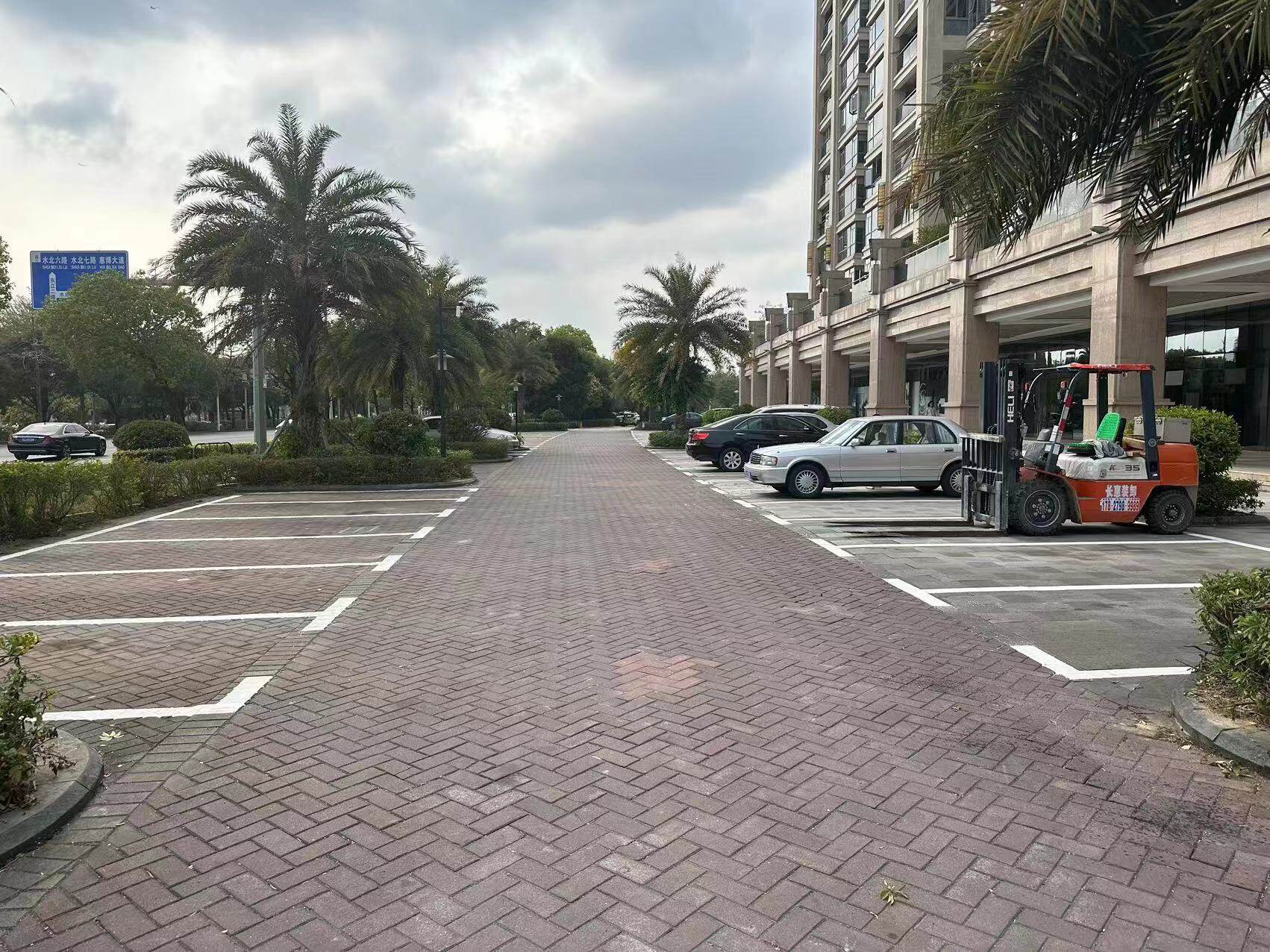 江北帝景灣小區(qū)周邊施劃了停車格。 惠州日?qǐng)?bào)記者譚琳 攝
