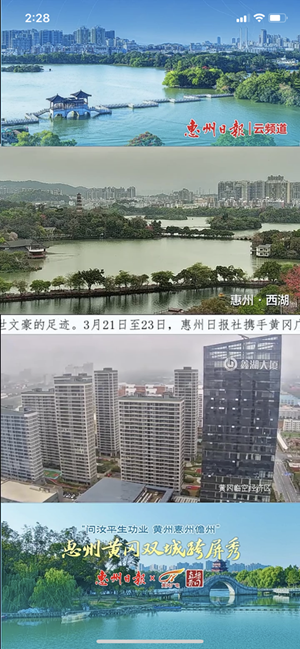 惠州、黃岡城市風(fēng)光慢直播同屏截圖。