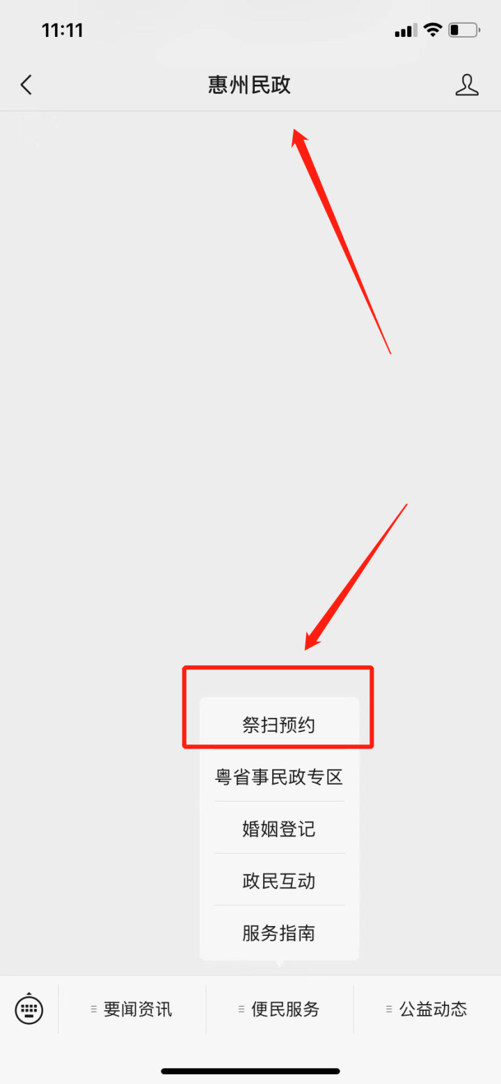 記者看到,目前“惠州市殯儀館”微信公眾號已開通“清明預約”欄目,并顯示該預約通道將于2023年3月23日開放。市民也可以通過“惠州民政”微信公眾號,點擊“便民服務-祭掃預約”進行預約。