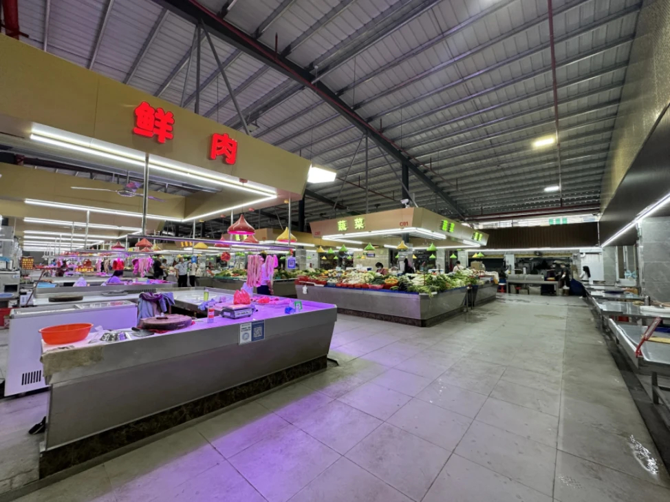 該市場除了保留原有的市場業(yè)態(tài),還引進(jìn)了綜合超市、現(xiàn)烤現(xiàn)賣的面包店。明亮通透的市場環(huán)境讓人賞心悅目,攤位整齊劃一,肉類、禽類、蔬菜、熟食、水產(chǎn)等分類有序擺放,既保留了傳統(tǒng)市場的“煙火氣”,又體現(xiàn)了商超型農(nóng)貿(mào)市場的新面貌。紅旗市場還進(jìn)一步引進(jìn)包括餐飲、娛樂、休閑等更多的商業(yè)元素,讓附近的村民、上班族購物都能更舒心。