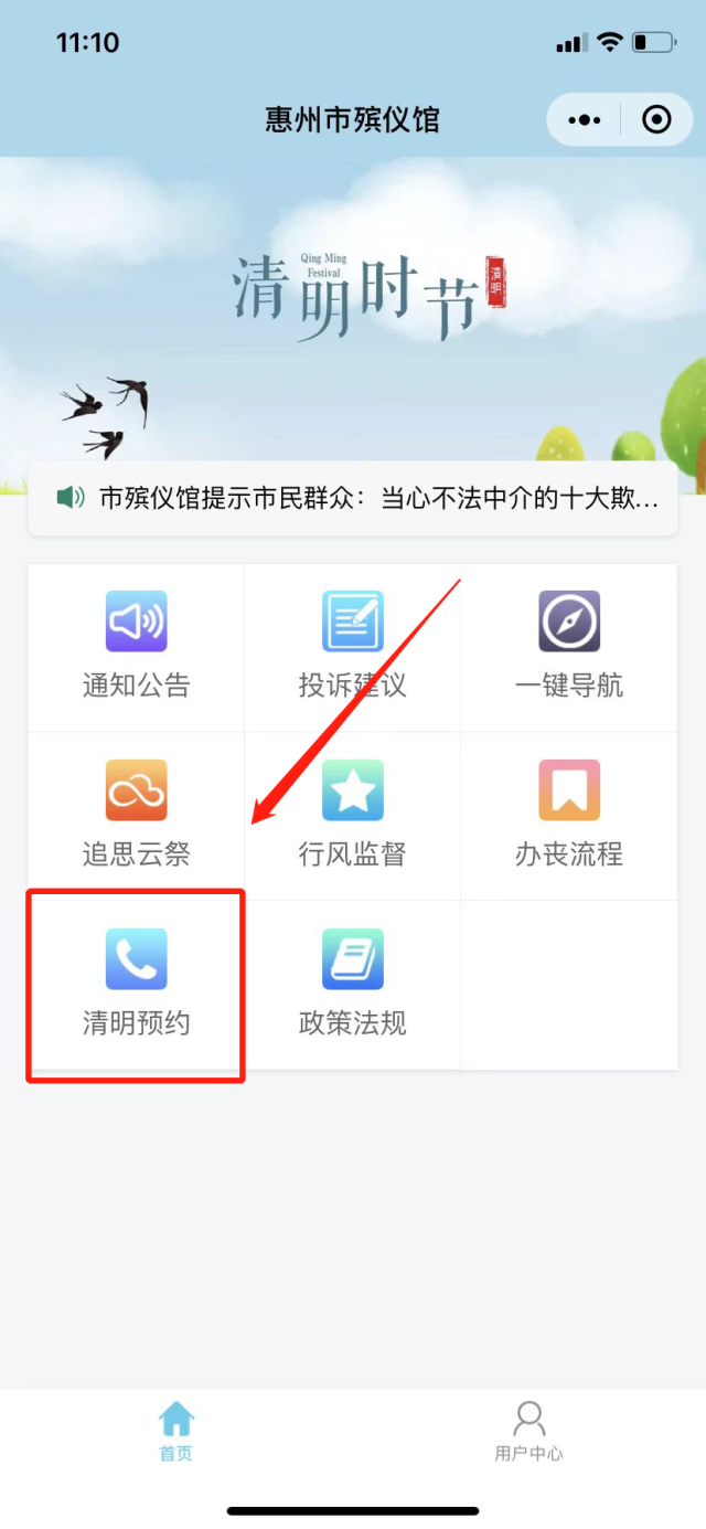 進(jìn)入祭掃預(yù)約頁(yè)面