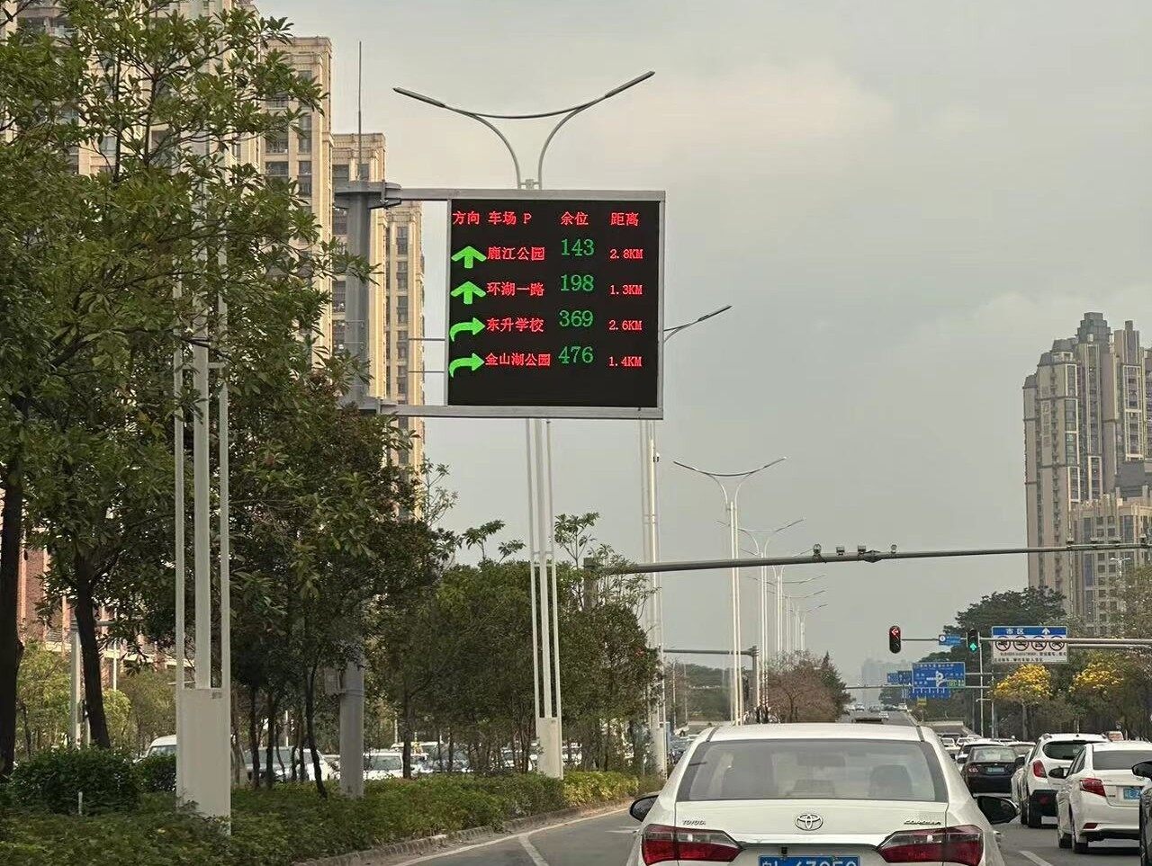 市民可以通過道路邊上誘導(dǎo)屏的指示查看停車場剩余空位。