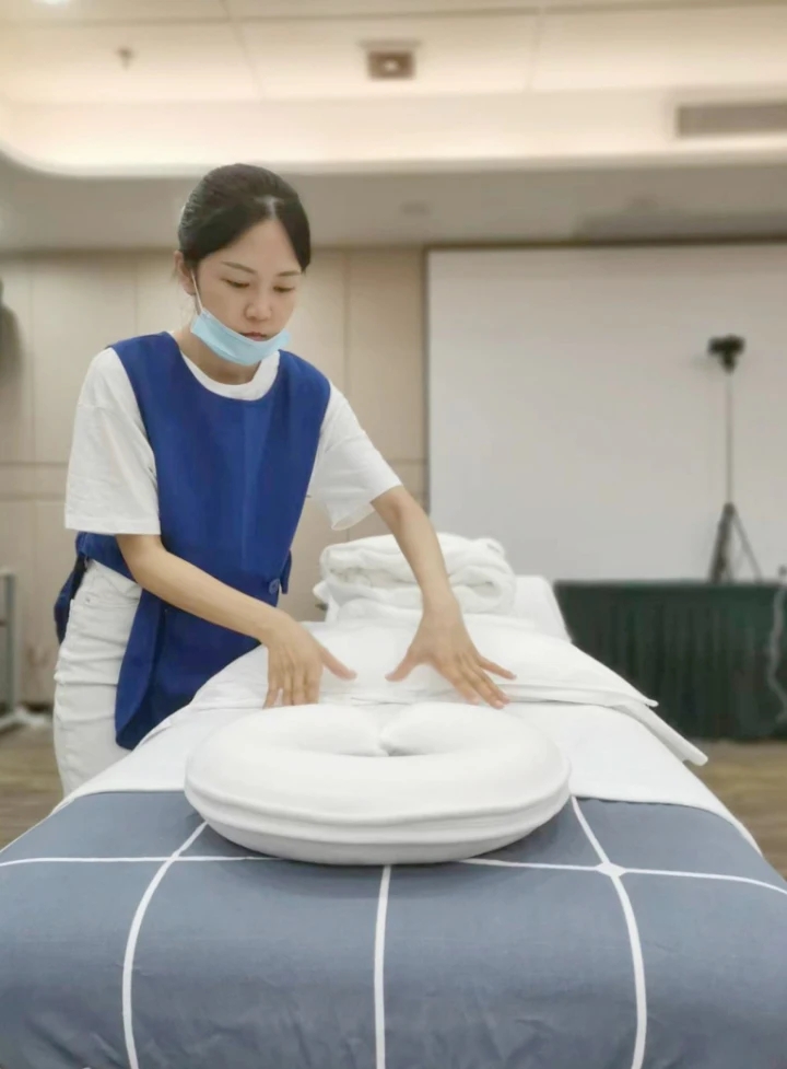 邱燕紅參加芳療師考試,實(shí)操按摩。