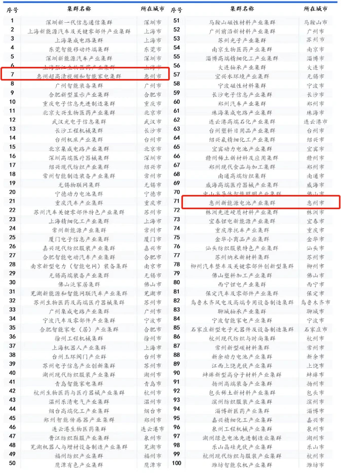 惠州兩大產(chǎn)業(yè)集群上榜2023中國百強產(chǎn)業(yè)集群