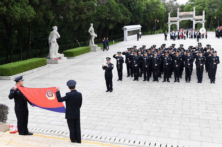 4月3日上午,惠州鐵路公安處機(jī)關(guān)、惠州地區(qū)所隊(duì)干部民警代表50余人前往惠州市豐山公園開展祭奠英烈活動。活動中,大家手持菊花,整齊肅立在東江人民革命烈士紀(jì)念碑前,致敬默哀,緬懷英烈們的豐功偉績,表達(dá)哀思敬意。默哀完畢后,全體人員面向警旗,高舉右拳莊嚴(yán)宣誓,重溫入警誓詞。隨后,大家拾階而上,緩步繞行,瞻仰紀(jì)念碑,敬獻(xiàn)鮮花。