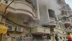 消防員現(xiàn)場(chǎng)發(fā)現(xiàn)起火部位為一樓房2樓的一住戶,陽(yáng)臺(tái)處可見濃煙不斷往外擴(kuò)散。