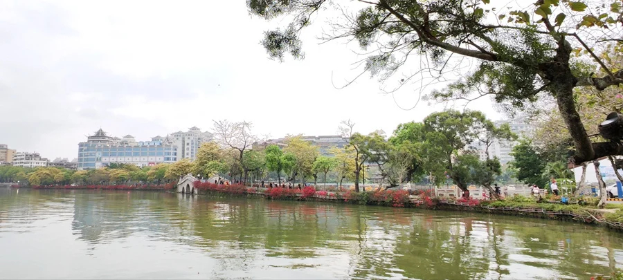最是人間四月天,風(fēng)和景明花正好。在惠州西湖陳公堤,專屬美景也如約而至:魚木繁花怒放,美不勝收。