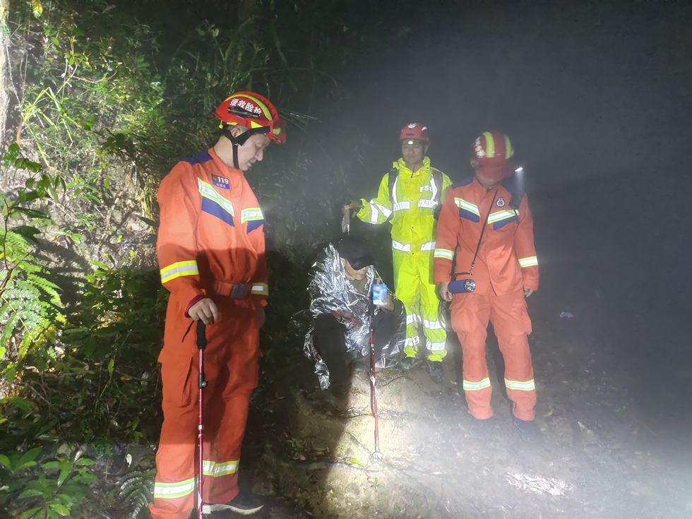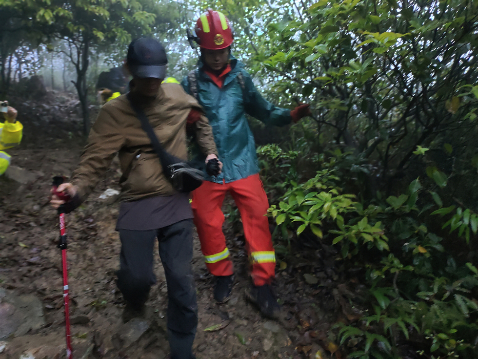 當(dāng)天8時(shí)50分許,新圩鎮(zhèn)專職消防隊(duì)再次接獲求救電話,稱該男子無法找到下山路線,身體出現(xiàn)低溫、虛弱等狀態(tài),隨時(shí)有生命危險(xiǎn),需要消防救助。新圩鎮(zhèn)專職消防隊(duì)約場(chǎng)執(zhí)勤點(diǎn)再次安排消防員前往白云嶂盤古廟,與熟悉山頂環(huán)境的東莞清溪山地救援會(huì)匯合。
