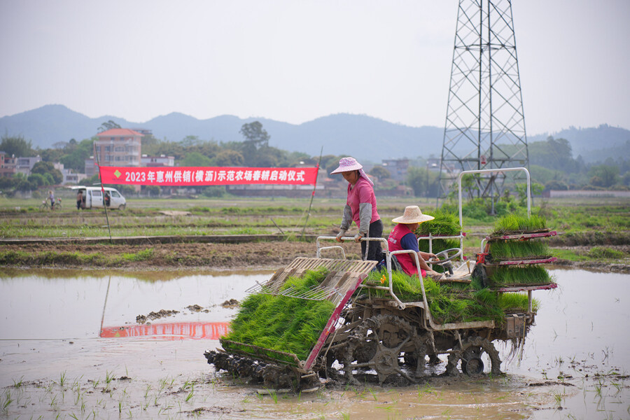 惠州日?qǐng)?bào)訊 (記者劉建威 通訊員余毅峰 郭權(quán))一車車秧苗運(yùn)到田間地頭,一排排秧苗整齊有序地插入水田……4月12日上午,2023年惠州供銷(橫瀝)示范農(nóng)場(chǎng)春耕啟動(dòng)儀式在惠城區(qū)橫瀝鎮(zhèn)舉行。記者從現(xiàn)場(chǎng)了解到,市供銷社計(jì)劃在全市打造10個(gè)供銷農(nóng)場(chǎng)項(xiàng)目,探索聯(lián)農(nóng)帶農(nóng)富農(nóng)新模式,助力鄉(xiāng)村振興。