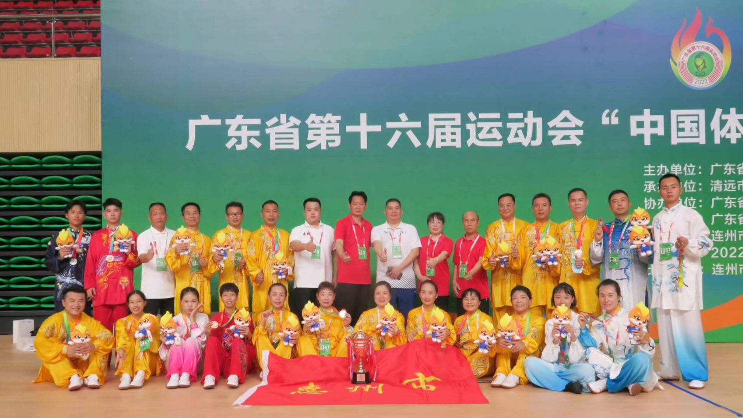 2022年8月2日,廣東省第十六屆運(yùn)動(dòng)會(huì)“中國體育彩票”群眾體育組太極拳比賽在連州市體育中心體育館舉行,惠州市太極拳代表隊(duì)派出25名運(yùn)動(dòng)員參加全部25個(gè)小項(xiàng)角逐(其中24個(gè)個(gè)人項(xiàng)目,1個(gè)集體項(xiàng)目),包括一等獎(jiǎng)1個(gè)、二等獎(jiǎng)8個(gè)、三等獎(jiǎng)14個(gè)。其中,丘耀文獲得孫式太極拳男子成年組一等獎(jiǎng)。