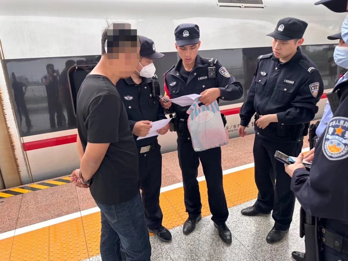 當天上午10時許,由深圳北開往合肥南的G2794次列車在粵贛邊陲呼嘯前進。當時,乘警葉小城聯(lián)合廣九客運段列車長楊開寧等乘務員對值乘列車按照常規(guī)進行反電信詐騙宣傳,發(fā)現(xiàn)5C座位青年男子面對反詐宣傳臉色慌張,并隨即起身轉(zhuǎn)頭離開欲往另一車廂,直覺推斷“該人應該有問題”于是迅速上前攔截詢問其身份信息,該男子閃爍其詞,不愿出示身份證。