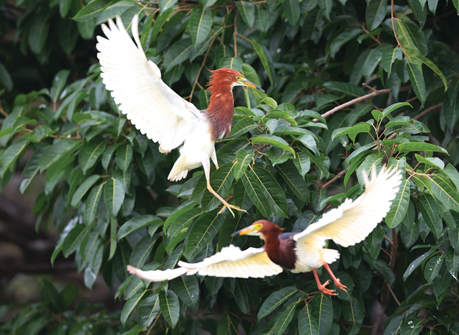 “呱呱”“啾啾”“咕咕咕”“啁啾”……暮春,在惠州西湖鳥島上及周邊樹林中,百鳥歡歌,好不熱鬧!