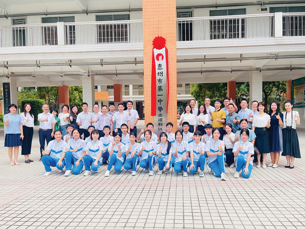 師生們在“惠州市第一中學惠港校區(qū)”揭牌儀式現(xiàn)場合影。