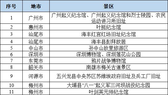 預(yù)計熱門紅色旅游景點11處: