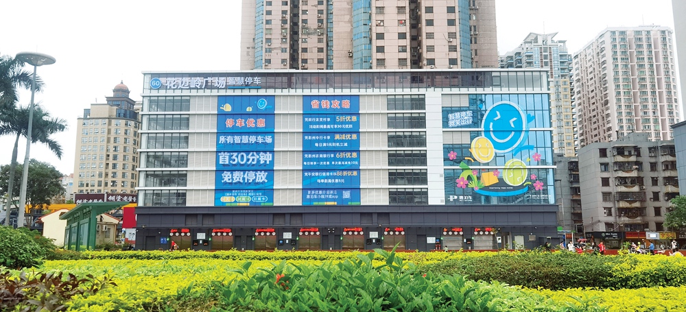市區(qū)花邊嶺廣場(chǎng)智慧停車(chē)場(chǎng)。