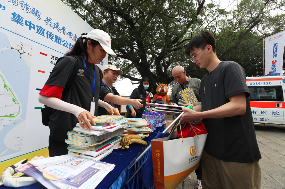 “防范電信詐騙,共建平安惠州!”簡短的啟動儀式結(jié)束后,大家高喊宣傳口號,組成4個方陣向惠州西湖景區(qū)不同方向撿跑。大家一邊慢跑,一邊撿拾路邊垃圾,一邊向沿途群眾發(fā)放反詐宣傳單。“我還是第一次參加這種活動,感覺很新鮮。”志愿者小張掩飾不住臉上的興奮表情,“既能倡導環(huán)保理念,又能宣傳反詐知識,非常有意義,參與熱情當然更高。”