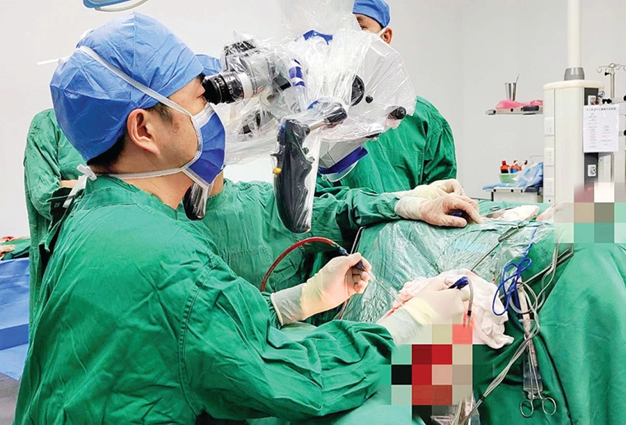 惠州市第三人民醫(yī)院副院長(zhǎng)、冊(cè)亨縣人民醫(yī)院院長(zhǎng)戴思平,惠州市第三人民醫(yī)院派駐冊(cè)亨縣人民醫(yī)院專家皮黨育迅速組織兩院多學(xué)科專家聯(lián)合會(huì)診,最后確定了手術(shù)方案——“顯微鏡下腦腫瘤切除術(shù)”。