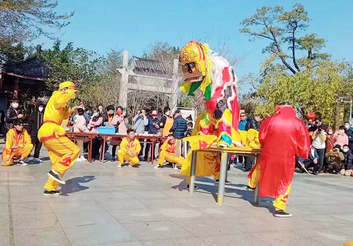 市級非遺項目惠東梁化藍氏集藝館斗牛獅展演。