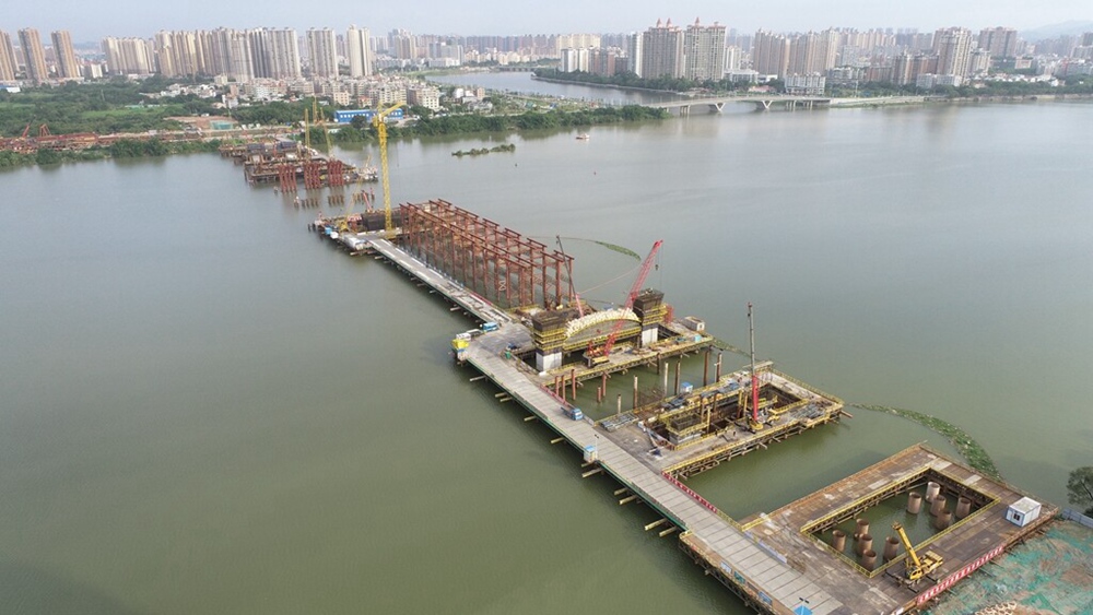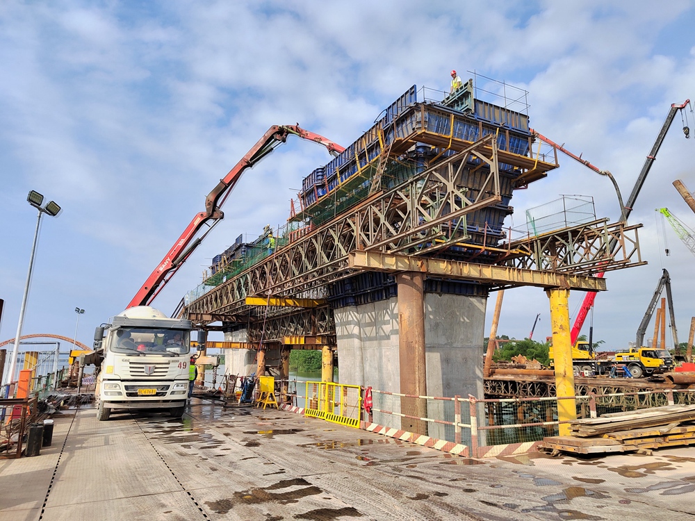 鵝城大橋主橋首個(gè)墩身完成澆筑