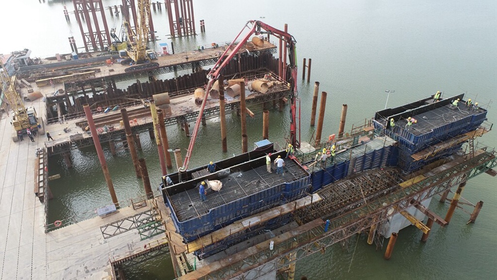 大橋主橋承臺(tái)和墩身施工進(jìn)入沖刺階段