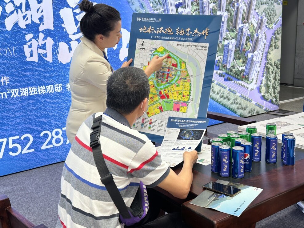 置業(yè)顧問為客戶介紹樓盤信息。在惠城區(qū)工作多年的丁先生此前已經(jīng)趁空余時(shí)間前往幾個(gè)樓盤看房,他提到,逛展會(huì)能夠快速篩選出滿足自己需求的意向樓盤,更方便“貨比三家”,避免了自己盲目前往,出現(xiàn)“白跑一趟”費(fèi)時(shí)費(fèi)力的情況。