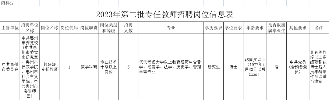 中共惠州市委黨校2023年第二批公開招聘專業(yè)技術崗位人員(專任教師)