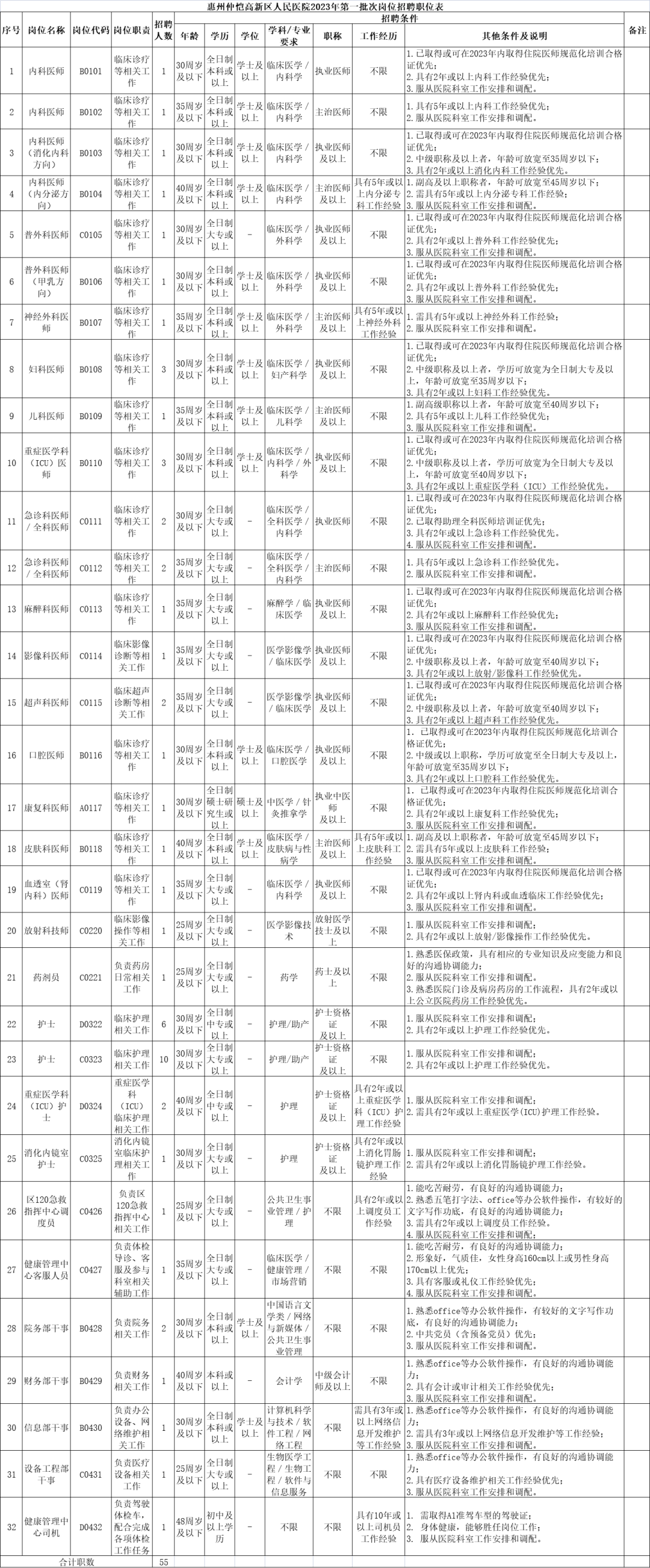 根據(jù)醫(yī)院工作需要,共招聘32個崗位55個職數(shù)的非編人員,在全國范圍內(nèi)招聘。