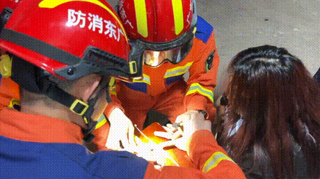 消防員觀察情況后立即尋找有利位置,在戒指與手指之間的空隙。消防員一邊安撫女子情緒,一邊利用尖嘴鉗固定戒指并用剪切鉗剪切戒指,經(jīng)過一番操作后成功將戒指取下。