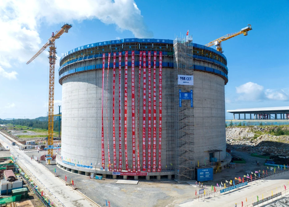 惠州LNG接收站于2021年7月23日正式開工,去年8月完成全部?jī)?chǔ)罐升頂,今年2月鋼結(jié)構(gòu)安裝正式開工,按計(jì)劃將于明年上半年建成投用。目前項(xiàng)目二期工程已啟動(dòng)前期工作,建成后年最大處理能力可增至1000萬(wàn)噸,后續(xù)還規(guī)劃在白沙湖區(qū)域擴(kuò)建4座LNG儲(chǔ)罐,將建成粵港澳大灣區(qū)重要的LNG儲(chǔ)備基地。