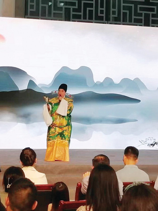 在“永遠的蘇東坡”藝術(shù)展演環(huán)節(jié)中,合唱《我愛蘇東坡》,詩朗誦《十月二日初到惠州》《寓居合江樓》《食荔枝》,誦唱《大江東去》,古琴獨奏《鶴舞洞天》,朗誦+東坡詩詞書法拓印《定風波·莫聽穿林打葉聲》《獨覺》,情景劇“三蘇”家教家風《不殘鳥雀》,獨唱《不辭長作嶺南人》,吟誦《記承天寺夜游》《江城子·密州出獵》,舞蹈《但愿人長久》,京歌《念奴嬌·赤壁懷古》等12個節(jié)目精彩上演,博得觀眾陣陣掌聲。