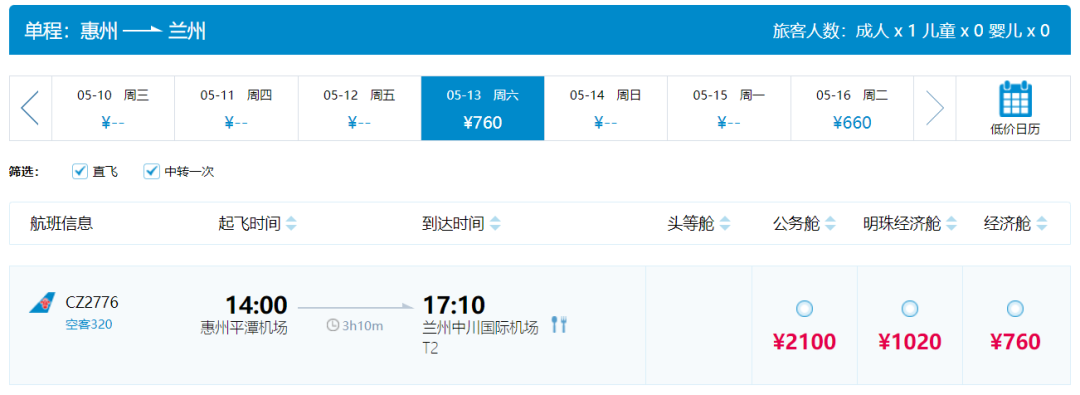 CZ2776惠州—蘭州