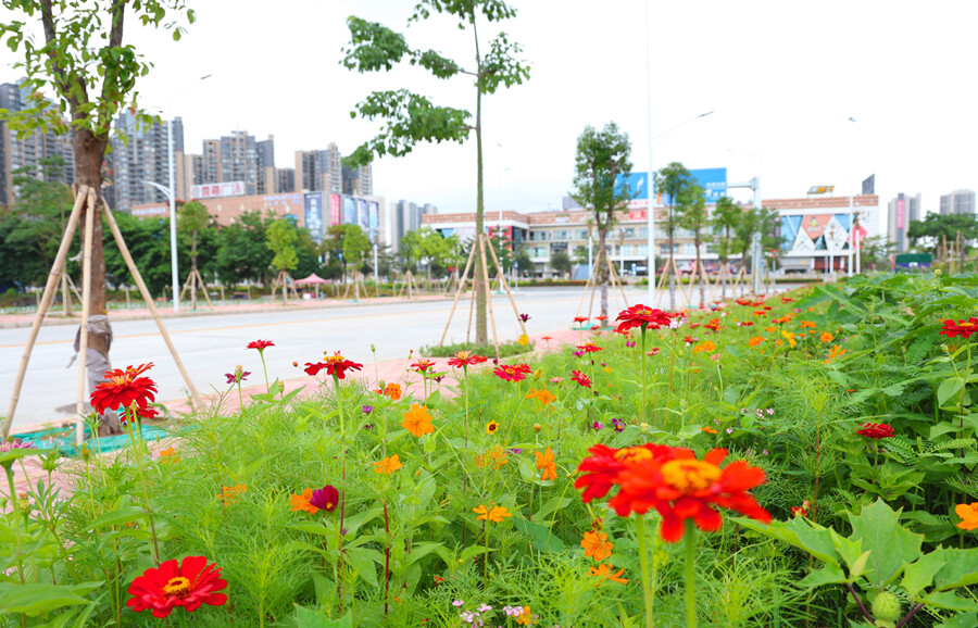 如今,分布在新城區(qū)的各式各樣的綠植,為城鎮(zhèn)建設添新綠。據統(tǒng)計,今年以來,該鎮(zhèn)已經完成了飛鵝大道、賢德東路和西路、紅旗二路、沙河堤路(沿河路)、明月一路以及文體廣場等主要道路和公園廣場的綠化工程,綠化面積約39752平方米。下來,該鎮(zhèn)將繼續(xù)對滘源路、飛鵝大道、石灣大道、市政行人道等實施花米播種和樹木種植,以“繽紛配綠”,讓城鎮(zhèn)更綠、更美、更靈動。