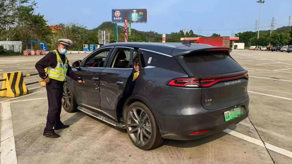 無獨有偶,不一會,民警又查獲一輛存在超員違法的小車,該車核載5人,實載7人,超員2人。